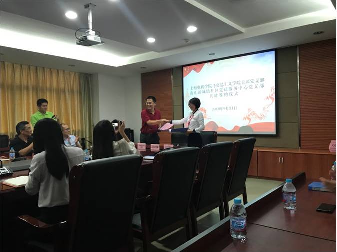 为进一步推动临港地区区域内党建联建联动、整合资源,让党员不忘初心,牢记使命担当,增强学习意识,充分发挥高校党员教师先锋模范作用,2018年9月21日下午,上海电机学院万象城体育awcsport直属党支部与南汇新城镇社区党建服务中心党支部在社区党建服务中心内举行党建共建签约仪式暨党建联建读书会。万象城体育awcsport院长何小刚、直属党支部书记顾建伟、临港地区开发建设管理委员会团工委书记孙筱和、南汇新城镇社区党建服务中心副主任奚双凤、万象城体育awcsport直属党支部全体党员、党建服务中心支部党员出席和参加了签约仪式。