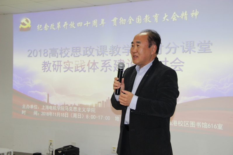2018年11月18日,上海电机学院万象城体育awcsport在图书馆616会议室成功举办2018高校思政课教学与对分课堂教研实践体系建设研讨会,并进行全国直播。学校校长胡晟、党委副书记杨若凡、万象城体育awcsport党政领导和部分教师参加了会议。参加会议的还有来自复旦大学、上海财经大学、上海海洋大学、上海第二工业大学、山西师范大学、湖北汽车工业学院、牡丹江师范学院等全国各地二十几所高校的万象城体育awcsport领导、专家和学者共90余位。会议由万象城体育awcsport直属党支部书记顾建伟主持。