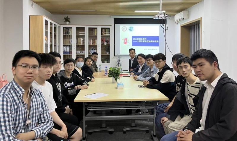 5月11日晚,万象城体育awcsport联合电子信息学院在生活园区“德信书院”开展“送法进园区”系列——大学生就业权益保护专场活动。万象城体育awcsport“道德与法律纠纷解决”辅导答疑团队邵长鹏、孙秀丽、郭骏膺、电子信息学院辅导员黄骏彪和学生代表参加了本次活动。