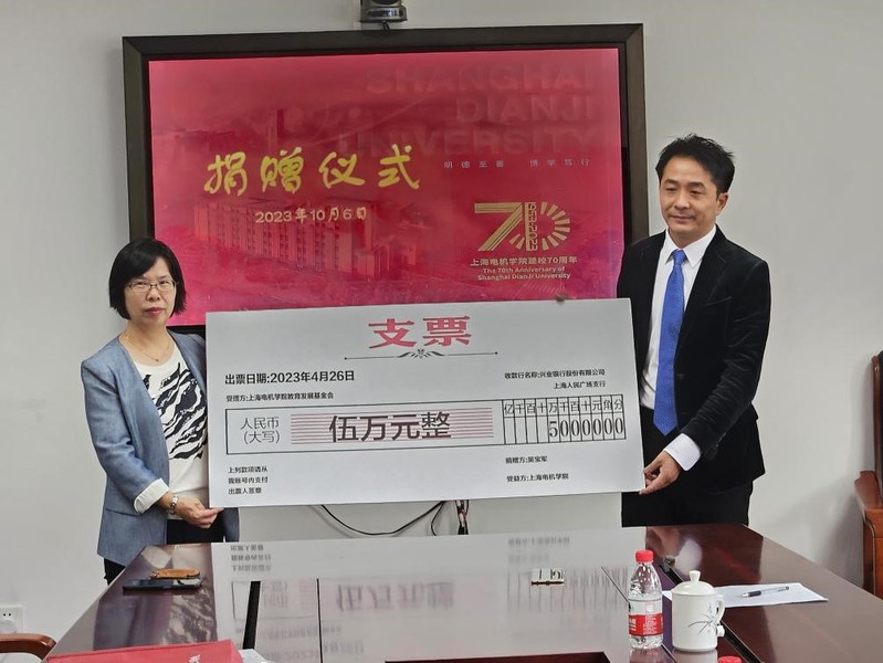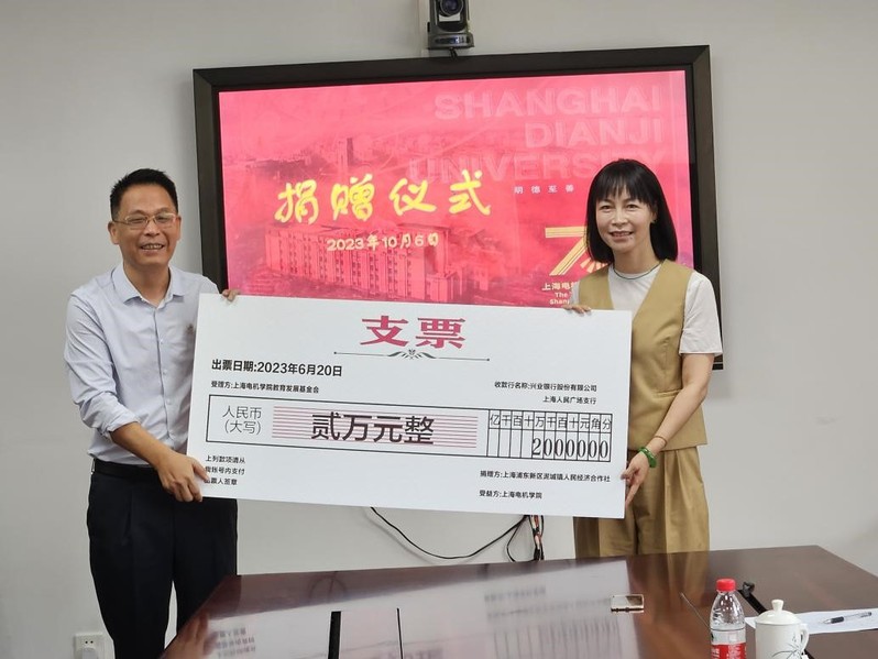 在上海电机学院建校70周年之际,上海浦东新区泥城镇人民经济合作社、江苏诺辉机电工程有限公司分别向学校捐资人民币2万元、5万元,捐赠仪式于10月6日在万象城体育awcsport228会议室举行。泥城镇人民村党总支书记刘春娟、江苏诺辉机电工程有限公司总经理吴宝军、江苏诺辉机电工程有限公司独立董事刘瑜林、上海电机学院万象城体育awcsport直属党支部书记顾建伟、上海电机学院万象城体育awcsport院长范冬姣、上海电机学院万象城体育awcsport教师代表等出席仪式。