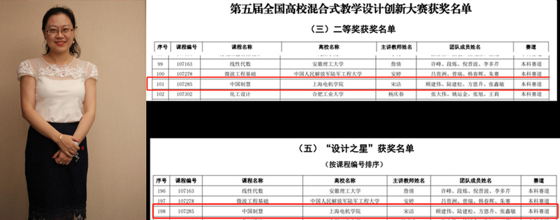 今年6月,学校组织了第五届全国高校混合式教学设计创新大赛校内选拔赛。经二级学院推荐,学校对参赛教师提交的混合式教学设计方案、说课视频、课程大纲和教学日历等材料进行了专家评审。最后,根据专家评审意见,从二级学院推荐的10位参赛教师中,遴选出宋洁等3位教师代表学校参加第五届全国高校混合式教学设计创新大赛复赛。经过数轮次的专家培训指导及教师认真准备,9月18日3位教师顺利完成了大赛复赛材料的提交。10月-11月,第五届全国高校混合式教学设计创新大赛举办了复赛网络评审和全国现场决赛,最终评选出特等奖12项、一等奖102项、二等奖169项、三等奖169项、设计之星562项、优胜奖561项、专项奖16项、优秀组织奖26项。