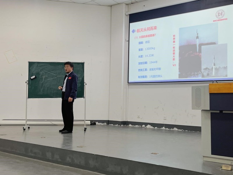 4月26日上午,在神舟十八号载人飞船成功发射、两个乘组航天员会师太空的同时,我校万象城体育awcsport张旭老师主讲的“四史”系列思政选修课“党史”课堂,也迎来了一位航天界“大咖”——上海电机学院微纳卫星智能研究院刘伟亮教授,他为160多名来自多学院、多专业学生讲授了一堂既具深刻意义又生动有趣的大思政主题课——“航天让生活更美好”。