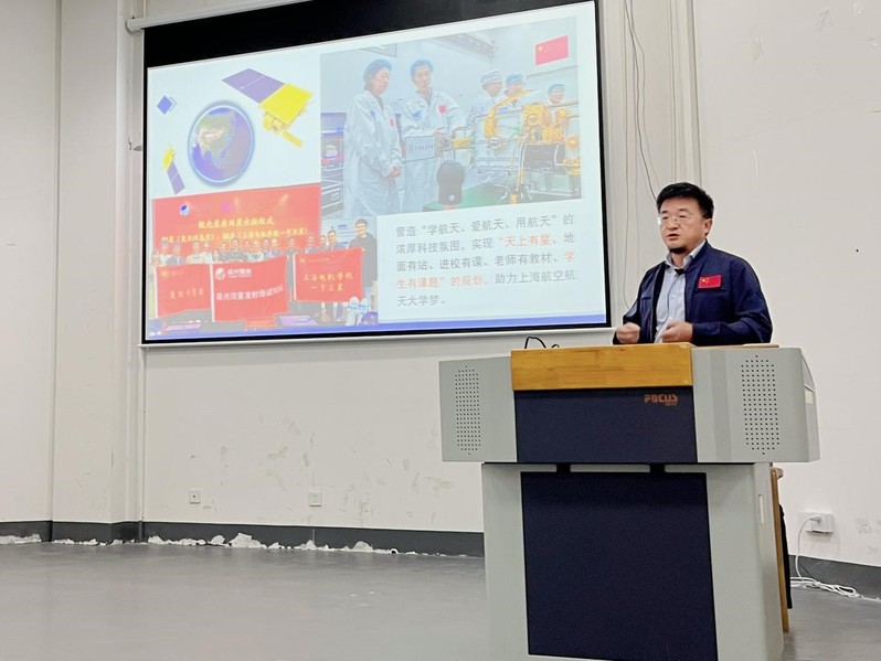 刘伟亮是闵行区政协委员、国防科工局专家组成员、南粤科学星总设计师,曾任上海航天空间技术有限公司总经理。此次,以第九个“中国航天日”为契机,在“上海电机学院一号卫星”出征仪式成功举行之际,刘教授为同学们介绍了“航天从何而来”“如何理解航天”及“航天怎样改变我们的生活”,重点讲授了我国航天事业从无到有、从小到大、从弱到强、攻克一个个难关、实现一批批重大跨越,取得一系列里程碑式进步的艰辛历程和辉煌成就。课后学生感慨道:“听行业专家讲课,对航天的了解更真切了。”“要将自己的学习与祖国的发展密切结合起来。”