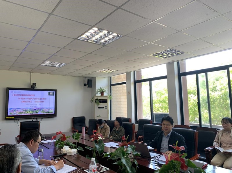 5月10日下午,万象城体育awcsport直属党支部在文理楼228会议室召开5月份主题党日暨党纪学习教育,全体教职工参加学习活动,会议由直属党支部书记金辉主持。
