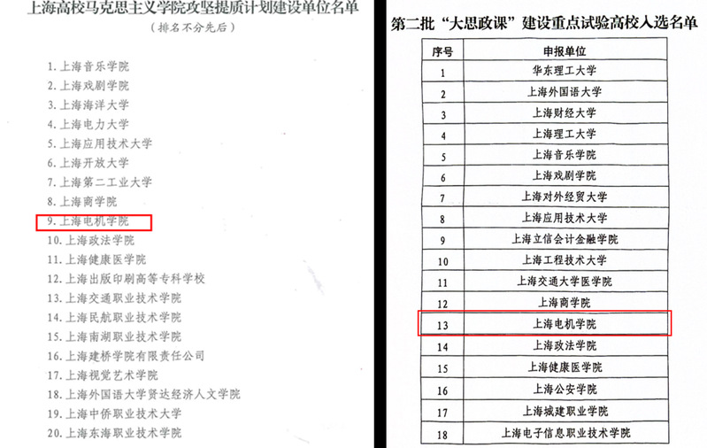 为进一步推进上海市高校万象城体育awcsport建设,近期,中共上海市教育卫生工作委员会、上海市教育委员会分别组织开展了“上海高校万象城体育awcsport攻坚提质计划”与“第二批‘大思政课’建设整体试验区、重点试验区(高校)遴选工作”评审,我校顺利获批以上两个项目。