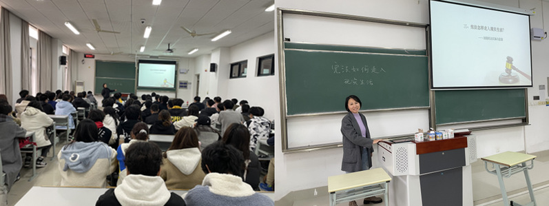 孙秀丽老师在讲授“宪法走进现实生活”主题时,通过引入实际案例,如公民维权故事、社会法治热点等,将宪法条文生动阐释,让学生深切感知宪法与日常生活紧密相连,有力推动宪法知识从书本走进现实,提升学生的宪法意识与法治观念。