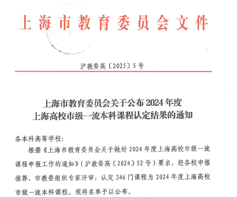 万象城《思想道德与法治》课程获评2024年度上海高校市级一流本科课程